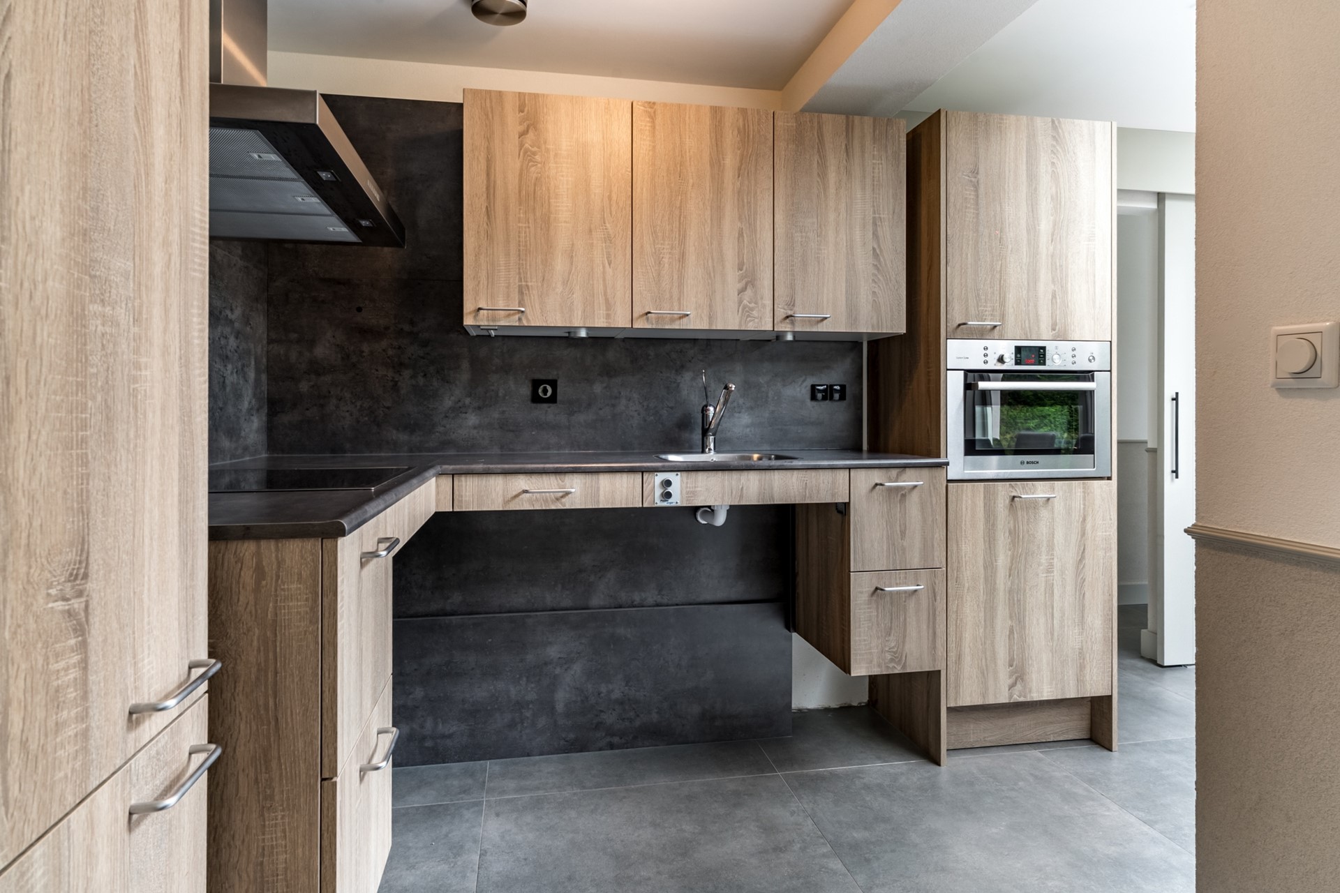 Het keukenmeubel is aangepast voor minder validen en kan elektrisch in hoogte
