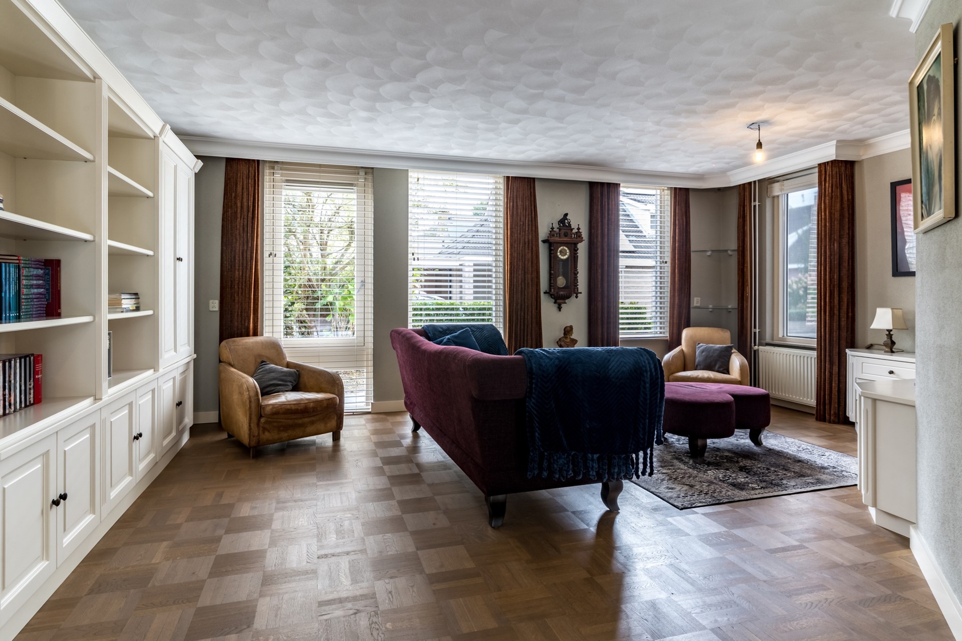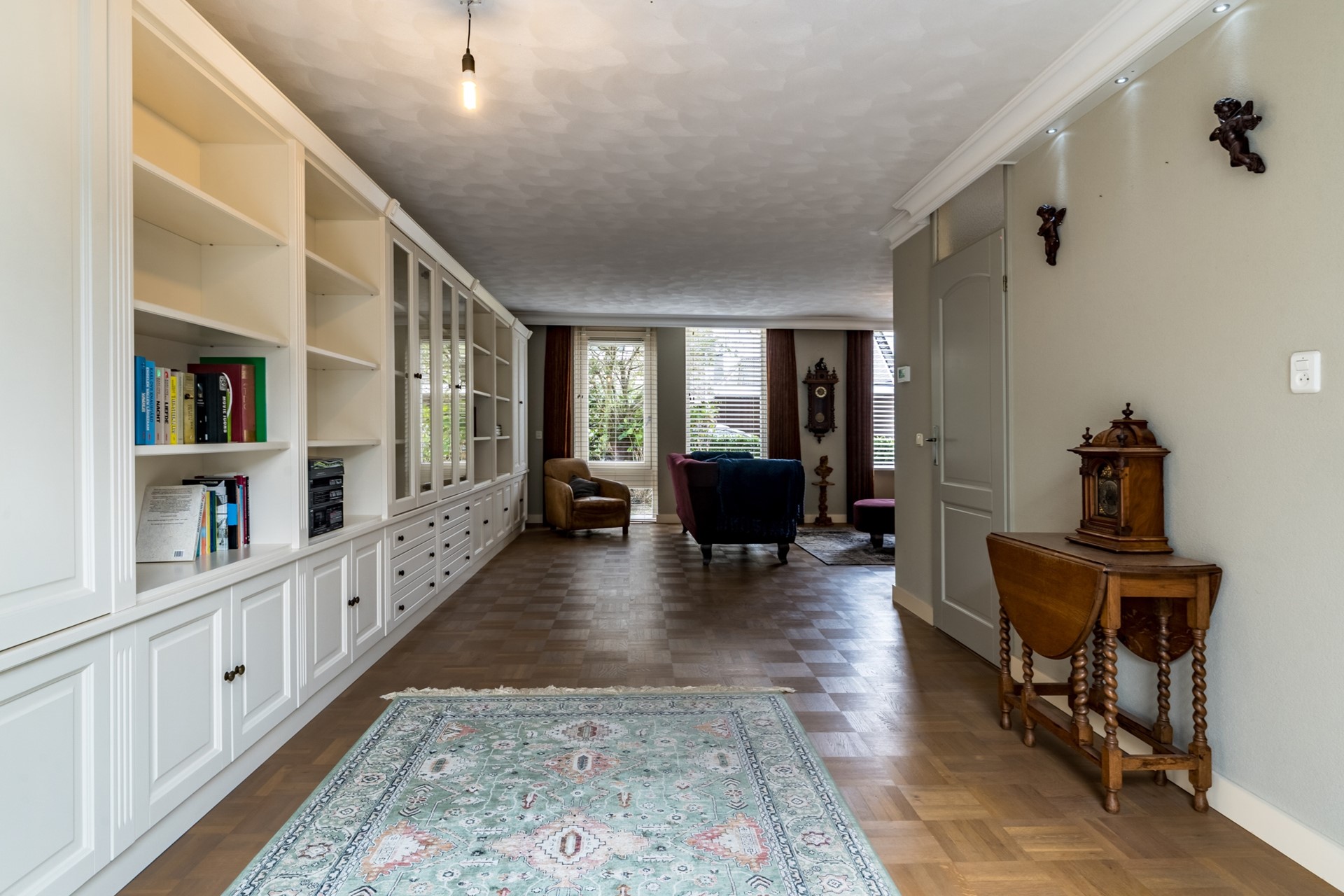 -Ruime uitgebouwde woonkamer ca 53m² met grote maatwerk kastenwand, lichtstraat