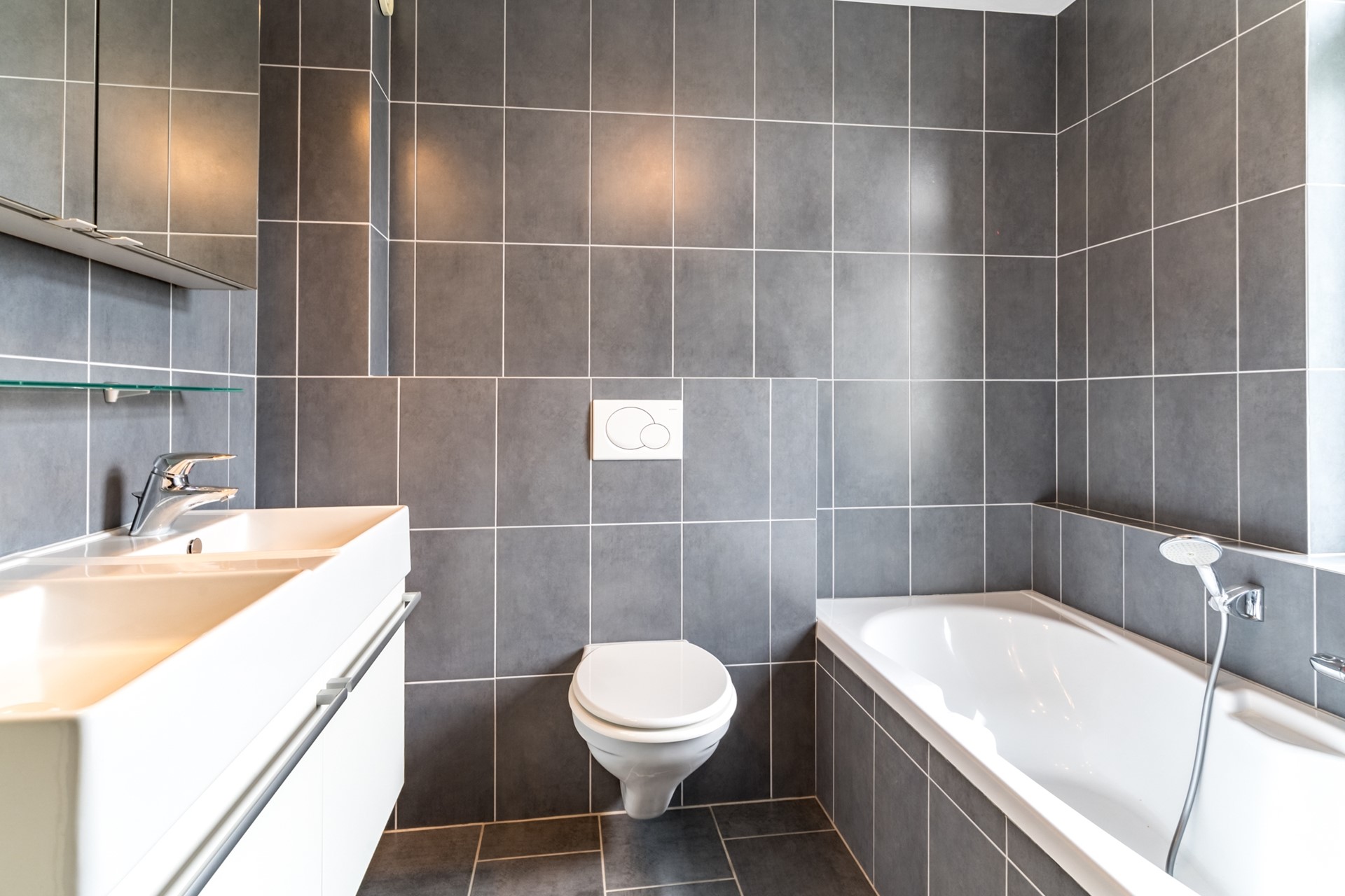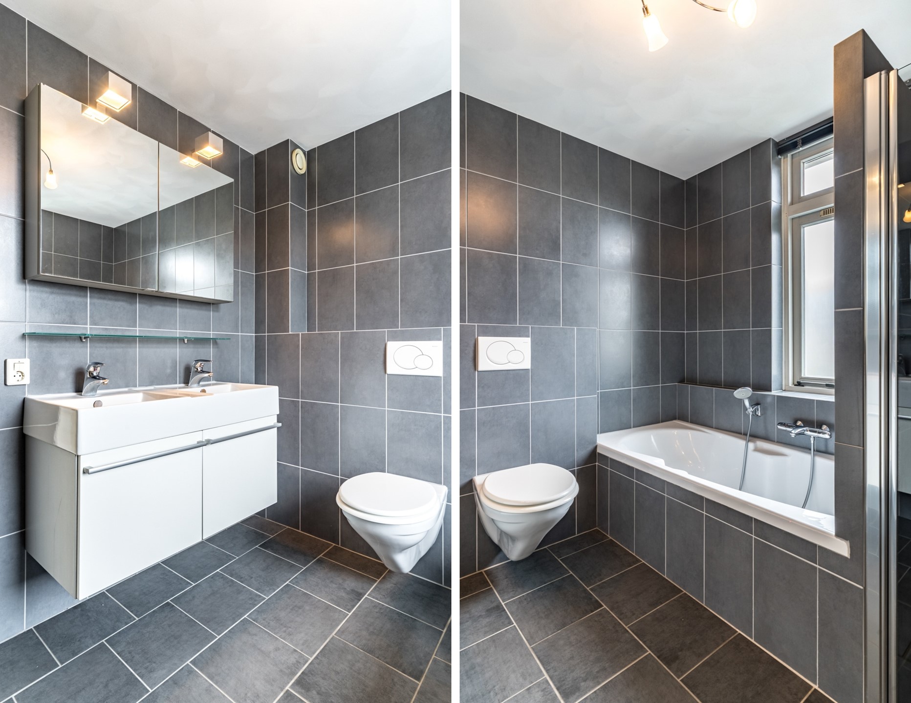 -Moderne badkamer (ca 6,5m²) met ligbad, douchecabine, dubbel wastafelmeubel en